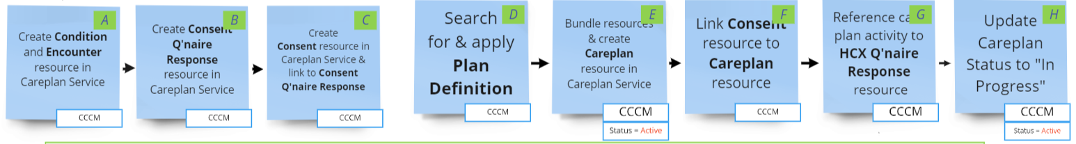 Refer to the “Create CarePlan” flow below for an illustration of the three typical scenarios by which the CarePlan Service API Sequence is Triggered.