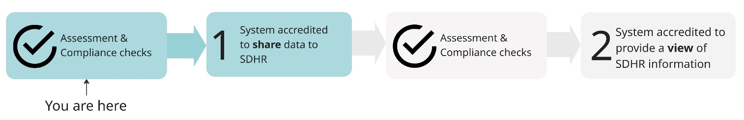Fig 1: Applications are assessed separately for their compliance with requirements to share and view SDHR information.